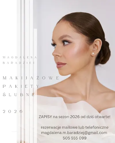 “Opinie są jednogłośnie pozytywne (wszystkie 5/5), chwalące Panią Magdalenę za profesjonalizm i wyjątkową jakość usług. Klienci podkreślają trwałość makijażu przez całą noc wesela, idealne dopasowanie do urody i przyjemną atmosferę. Makijaże są naturalne, subtelne i odporne na łzy czy wysoką temperaturę.”